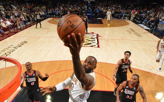 76人依靠格莱姆斯的三分球和恩比德的跳投,将比分追到105平。关键时刻还是詹姆斯站出来,他接到东契奇助攻,又在45度角外线出手三分命中。76人的进攻未果,湖人随后一攻交到詹姆斯手中。他持球突破,后撤步中投得手。比赛时间还剩27.3秒,湖人110比105领先5分,76人叫了暂停。